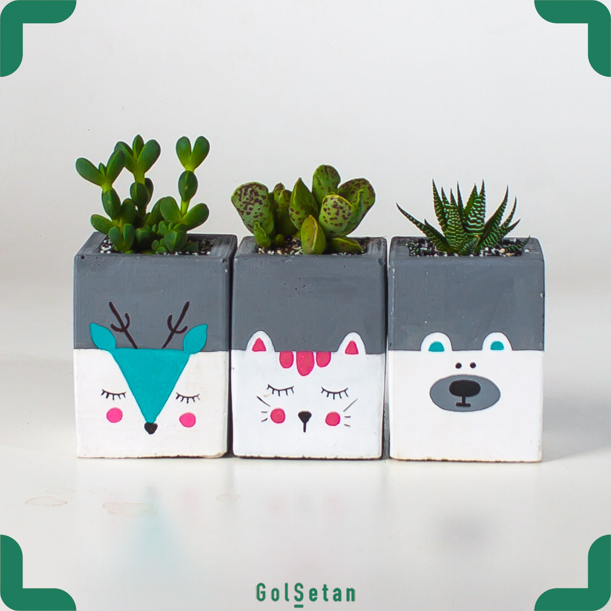 برای آشنایی بیشتر انواع ساکولنت ها (کاکتوس‌های بدون تیغ)، مطلب روش نگهداری و معرفی سالکولنت‌ها رو مطالعه نمایید.ست 3 تایی گلدان بتنی عروسکی