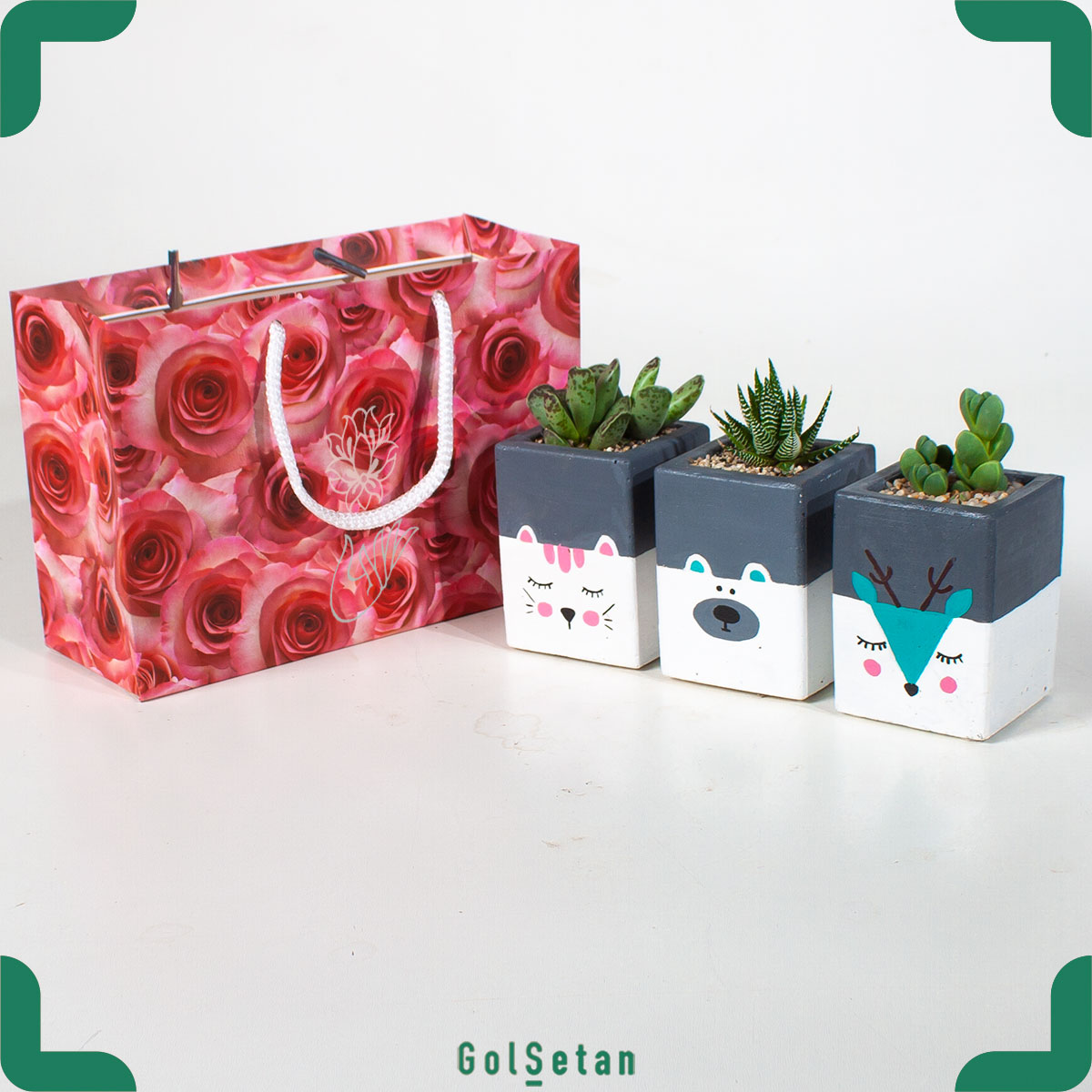 این پکیج زیبا از سه نوع کاکتوس مختلف تشکیل‌شده که در گلدان‌های بتنی زیبا با طرح‌های عروسکی  بامزه کاشته شده‌اند. این سه کاکتوس در پک کادویی دسته‌دار قرار می‌گیرند و برای شما یا عزیزان‌تان در زمان دلخواه‌تان ارسال می‌شوند. این محصول می‌تواند هدیه‌ای بامزه برای کودکان و نوجوانان  و دوستان نزدیک‌تان باشد. این یک گلدان مخصوص کودک است که می تواند آنها را گیاهان آشنا کند.
