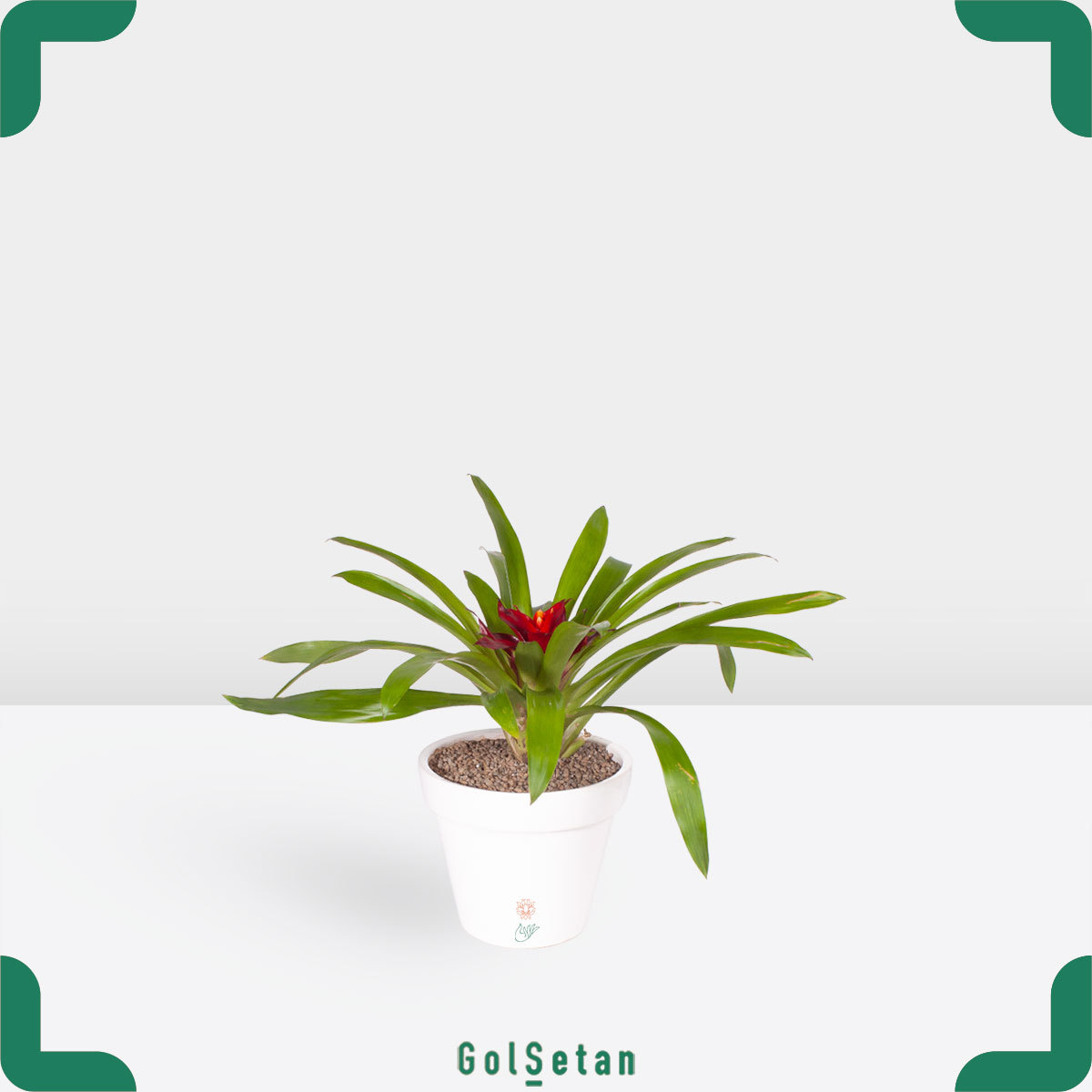 اگر دوست دارید رنگ و بوی طبیعت را با گیاهان گلدار به خانه بیاورید، اما نمیدانید که چه گیاهی بخرید، پیشنهاد میکنیم گیاه گازمانیا در گلدان سفید را حتما خریداری کنید. این گیاه با برگهای سبز و براق خود که در مرکز به قرمزی میگرایند و نیز گلهای زیبایی که دارد، حسابی توجه شما را به خود جلب خواهد کرد. گلسِتان نیز این گیاه را به همراه یک گلدان سرامیکی سفیدرنگ به شما ارائه خواهد کرد که ظاهری جذابتر به گیاه میدهد.